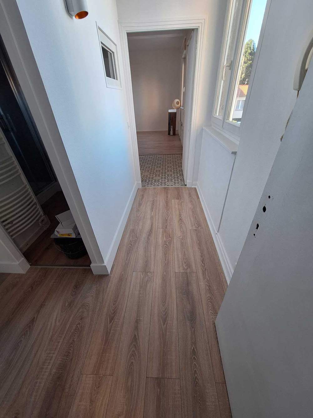 Rafraîchissement d'un appartement entier sur la commune de castres pose de nouveaux sol peinture appareillage électrique climatisation.