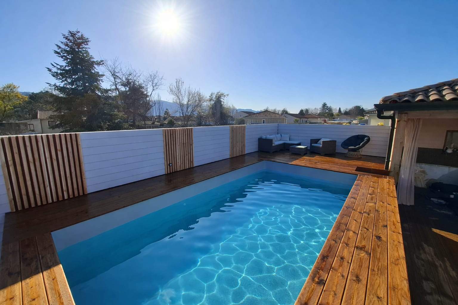 Nous sommes spécialisés dans la création et la pose de terrasses en bois, ainsi que dans la conception de pool houses élégantes.